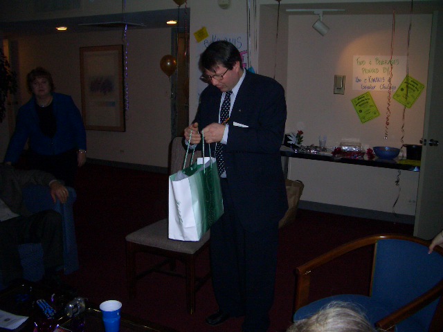 Getting the Gavel from Park Ridge AM at Holiday Embrace. What's in the bag?