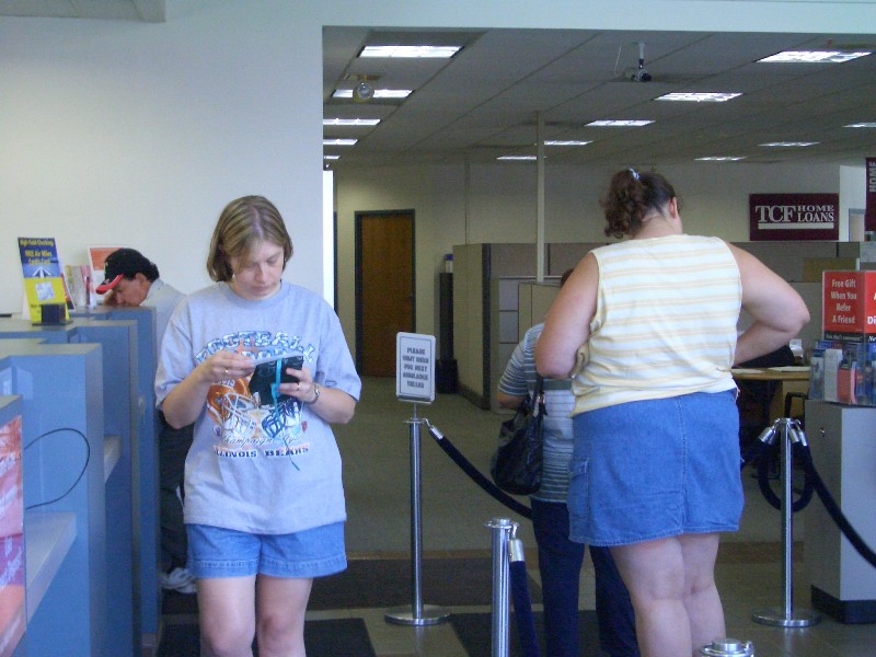 Julie and Kim depositing the money.