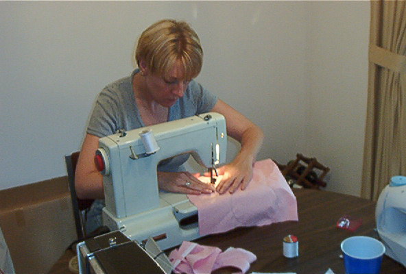 Robin concentrates on sewing