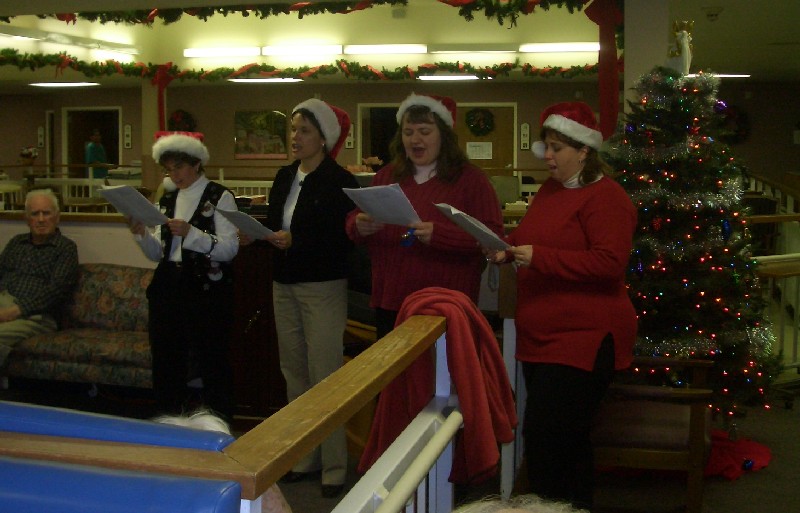 Leslie, Renee, Kristin, and Michelle in the "Special Care" section of Friendship Village. Sing it girls!