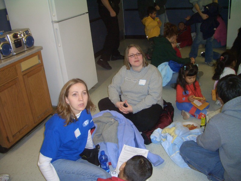 Afterwards, the kids were given a pizza lunch. Here's Cindy and Jenny.